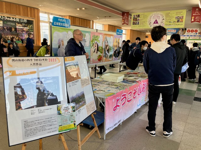2024/04/0920240324 やまがたえきまちなかマルシェで「関山街道の四季フォトコンテスト」のPR