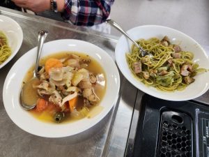 2班に分かれて、みなさんで、鳥の手羽元のシードル煮とバジルスパゲッティを作りました。