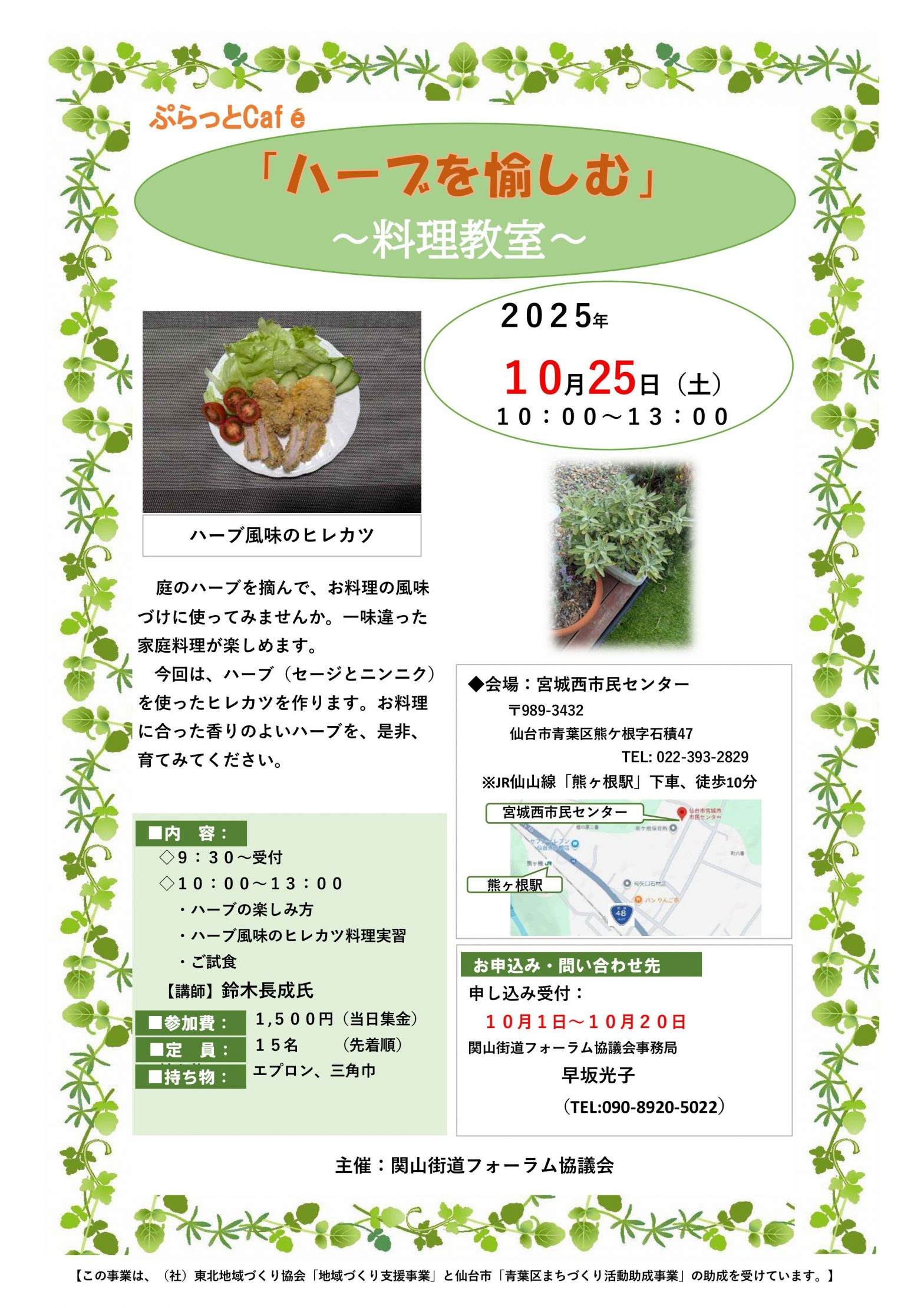 2025/09/3020251025(土)「ハーブを愉しむ」~料理教室~開催のお知らせ