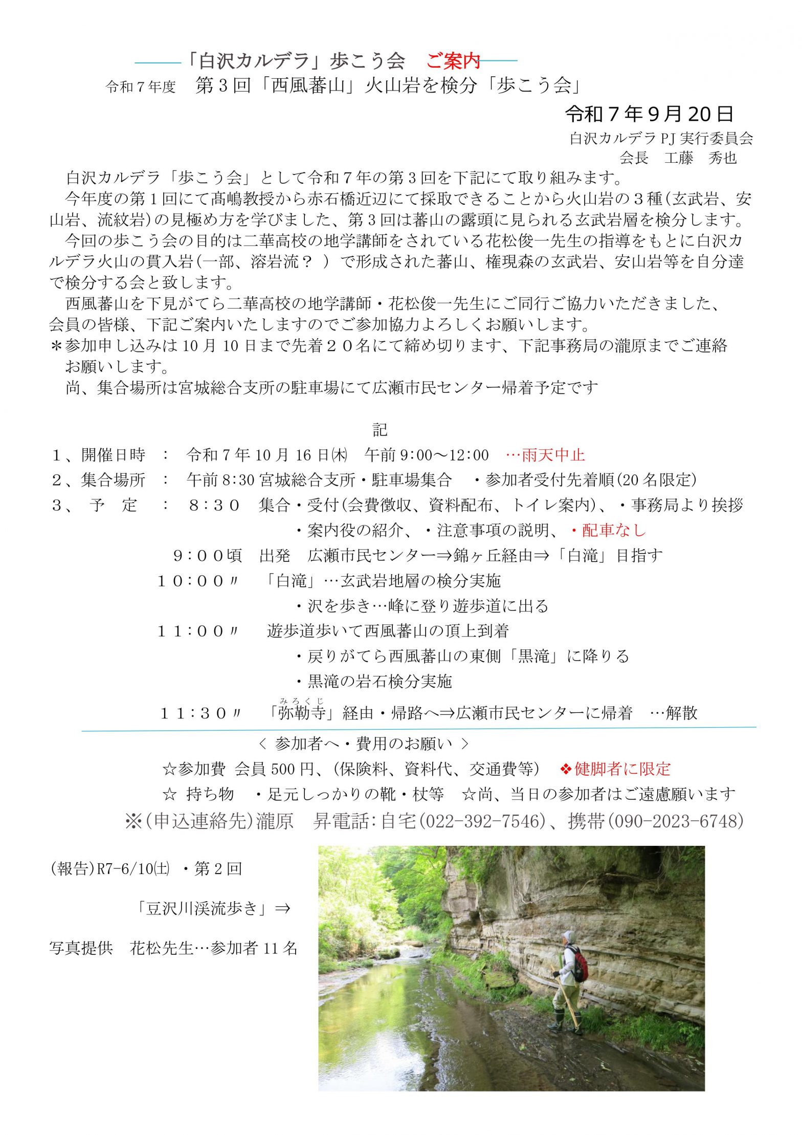 白沢カルデラ「歩こう会」として令和7年の第3回を下記にて取り組みます。