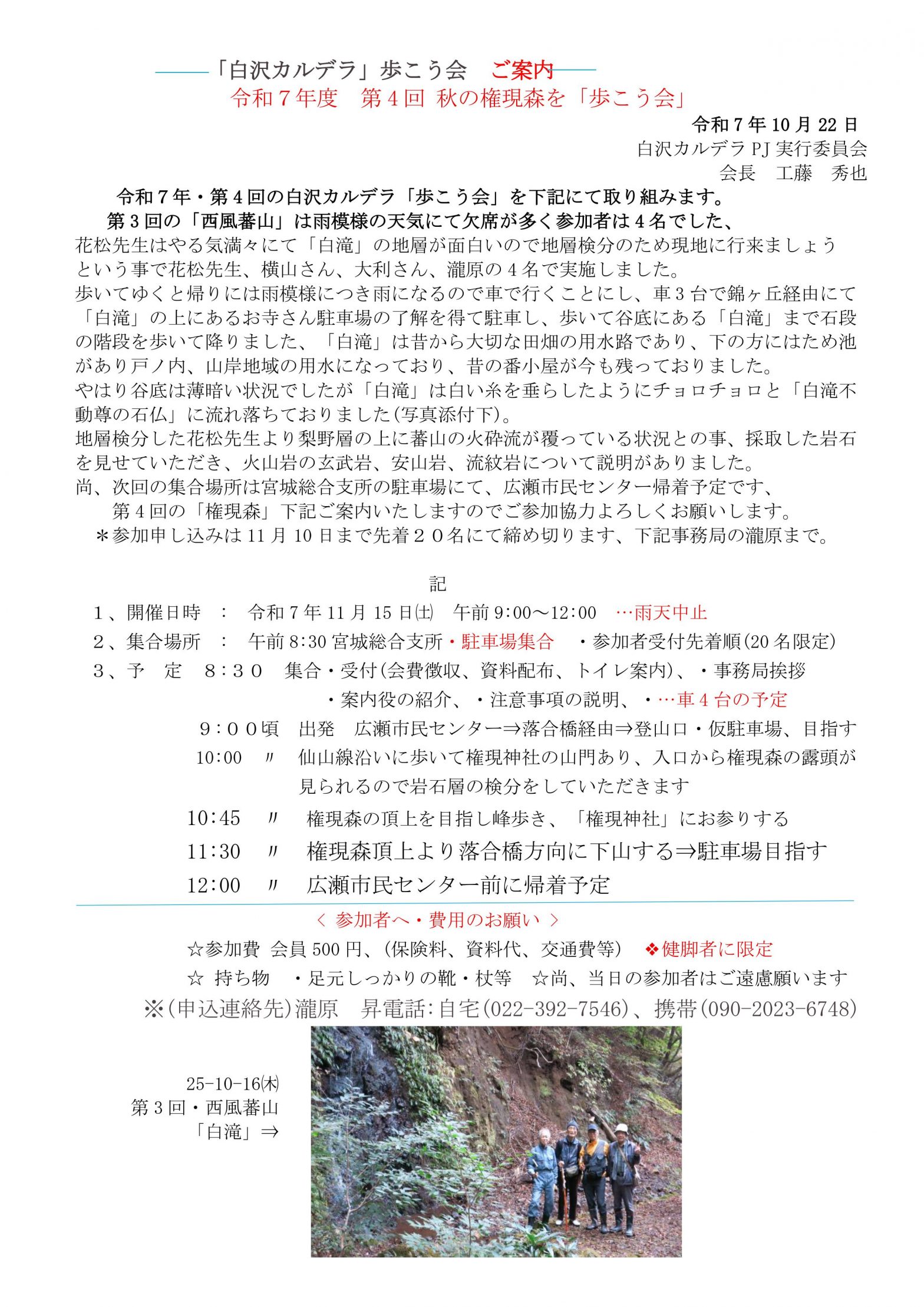 「白沢カルデラプロジェクト実行委員会」の歩こう会の第4回の「権現森」ご案内です。