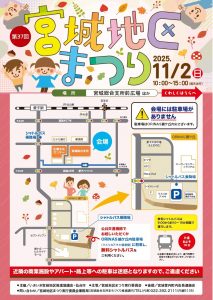 宮城地区の秋の風物詩、「宮城地区まつり」を開催します。37回目を迎える今回は、毎年恒例のステージ発表、新鮮な地元産野菜の販売、子ども遊びや飲食ブース「みやぎグルメ横丁」のほか、昨年ご好評いただいたはたらく車の体験コーナーの出店内容も充実。楽しい企画をたくさん予定しております。ぜひお越しください。