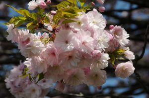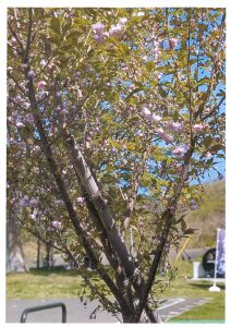 2年前に植樹した寄せ植えの桜が、立派に成長し綺麗な菊咲の花を沢山つけております。